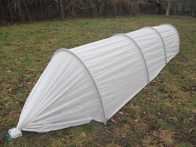 4)Полезное дополнение По торцам парника на концах укрывного материала теперь пришиты ленты- завязки, чего нет в других парниках. Этими лентами удобно связывать скрученные концы укрывного материала, когда парник устанавливают путем натягивания его торцов.