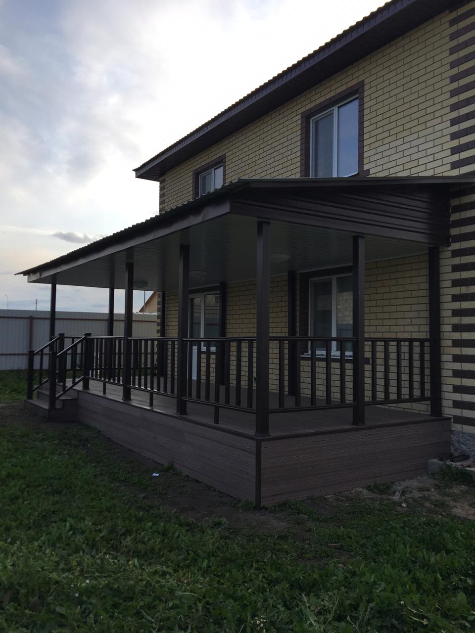 Наши специалисты в Тюменском филиале рассчитали, поставили материалы и осуществили монтаж веранды для частного дома.